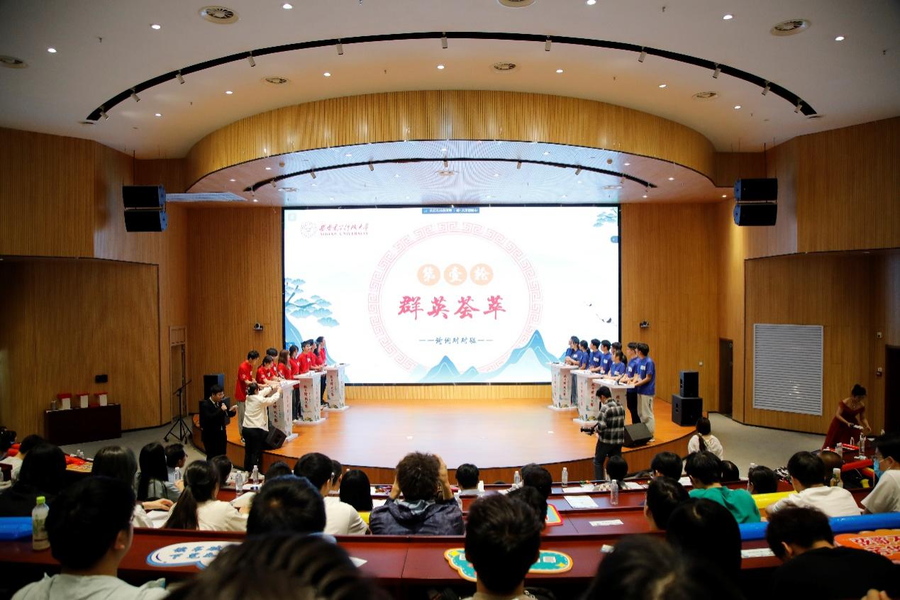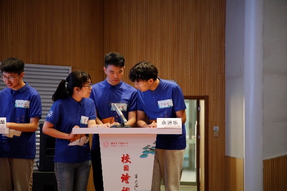 經(jīng)過(guò)初賽、復(fù)賽的層層選拔,18名同學(xué)進(jìn)入決賽環(huán)節(jié)。決賽分為群英薈萃(詩(shī)詞對(duì)對(duì)碰)、大浪淘沙(詩(shī)詞小劇場(chǎng))、誰(shuí)與爭(zhēng)鋒(詩(shī)詞線索題)和巔峰對(duì)決(飛花令)四輪進(jìn)行,采用本科生、研究生混合組隊(duì)答題形式進(jìn)行比賽。