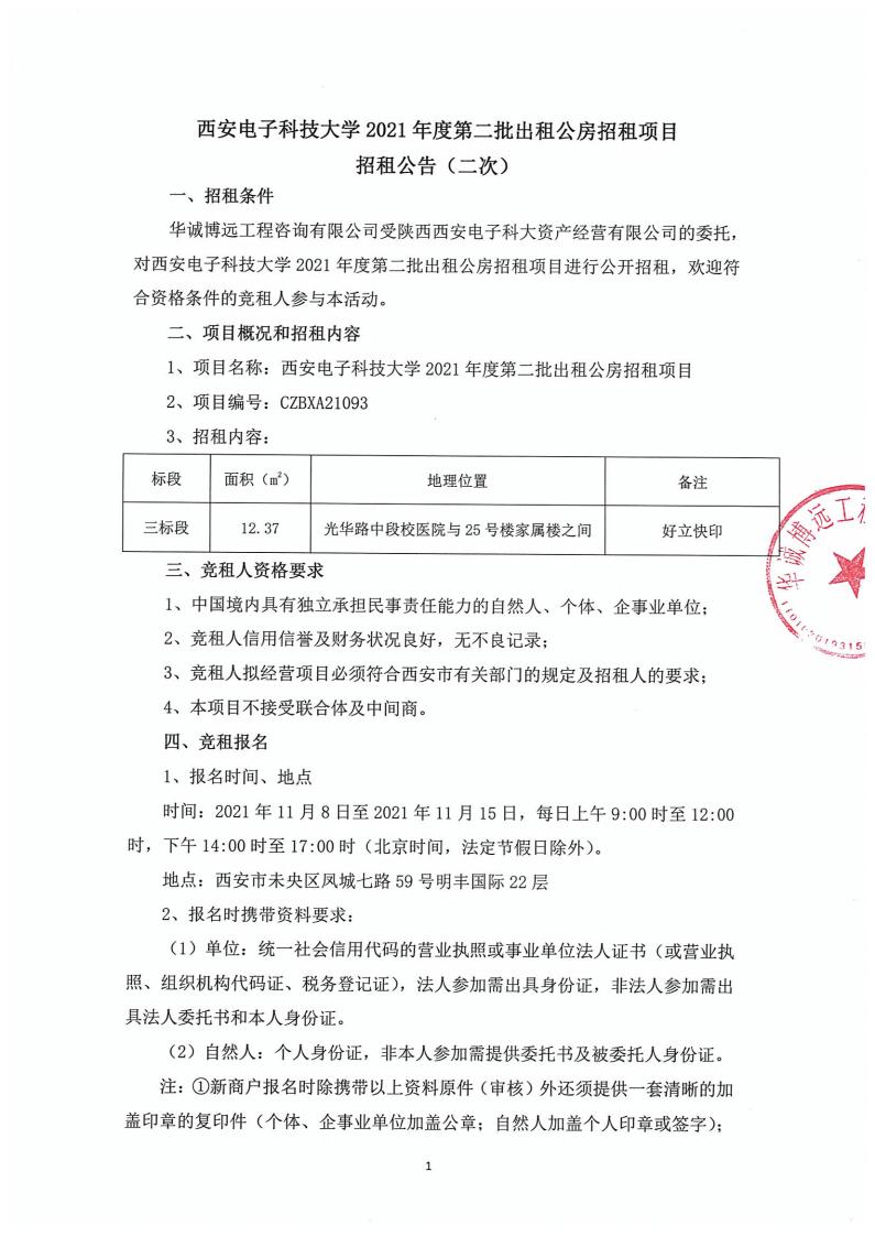 簡介:西安電子科技大學2021年度第二批出租公房招租項目招租公告(二次)