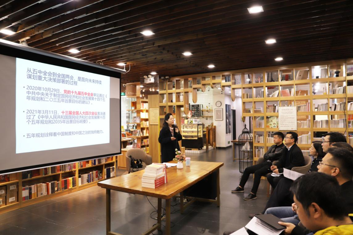 3月30日下午,資產經營公司黨委專題學習貫徹黨的十九屆五中全會精神讀書班在西電1931書店舉辦,中共陜西省委黨校中國特色社會主義理論研究中心唐瑩副教授為大家作題為《開啟全面建設社會主義現代化國家新征程——學習黨的十九屆五中全會精神》的分享。讀書班由黨委書記董大威主持,資產經營公司黨員及部分職工在現場參加學習。
